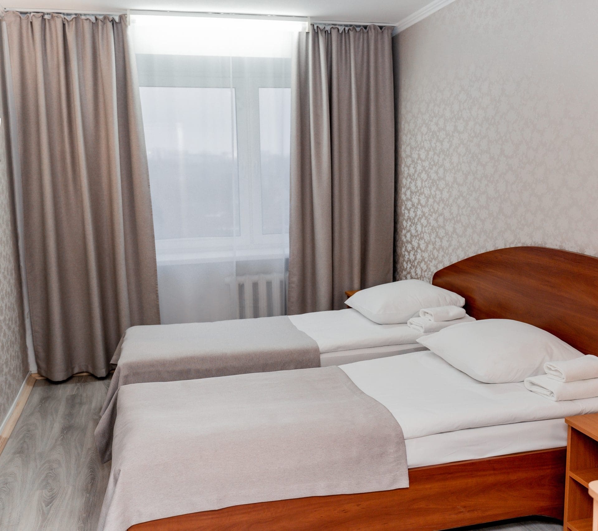 Гостиница «Спутник» расположена недалеко от центра города и ЖД вокзала. Удобное транспортное сообщение, близость к достопримечательностям города, бесплатная стоянка - преимущества нашего отеля. Гостиница «Спутник» предлагает размещение в комфортных номерах с бесплатным Wi-Fi, телефоном, ТВ, мини-холодильником. Гости могут воспользоваться комплексом полезных сервисов и услуг. На первом этаже отеля расположен конференц-зал и бизнес-центр, ресторан белорусской и европейской кухни, кулинария, парикмахерская, сауна.