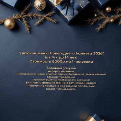*По желанию /за доп. плату/ Новогодний банкет в отеле «Балтика». 11500 руб./взрослый, 8000 ребенок (3-14 лет включительно) вместе с развлекательной программой.